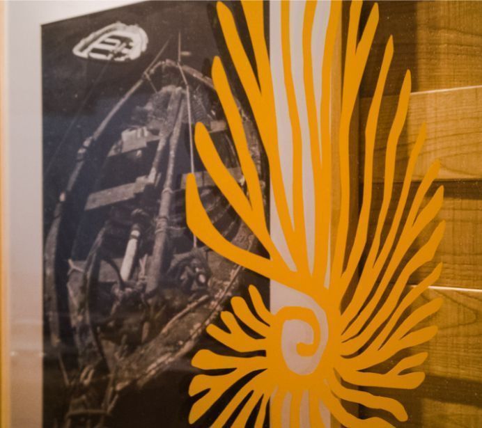 La zona subterránea del hotel, tras los arcos de piedra de la planta baja, acoge una pequeña biblioteca y sala de lectura especializada en temas marítimos e históricos de Muros.